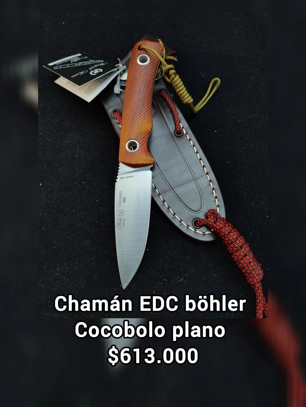 Hoja Acero Vanadio 1.4116Tamaño hoja 7.5 cmT amaño16 cm Peso90 gFundaCuero